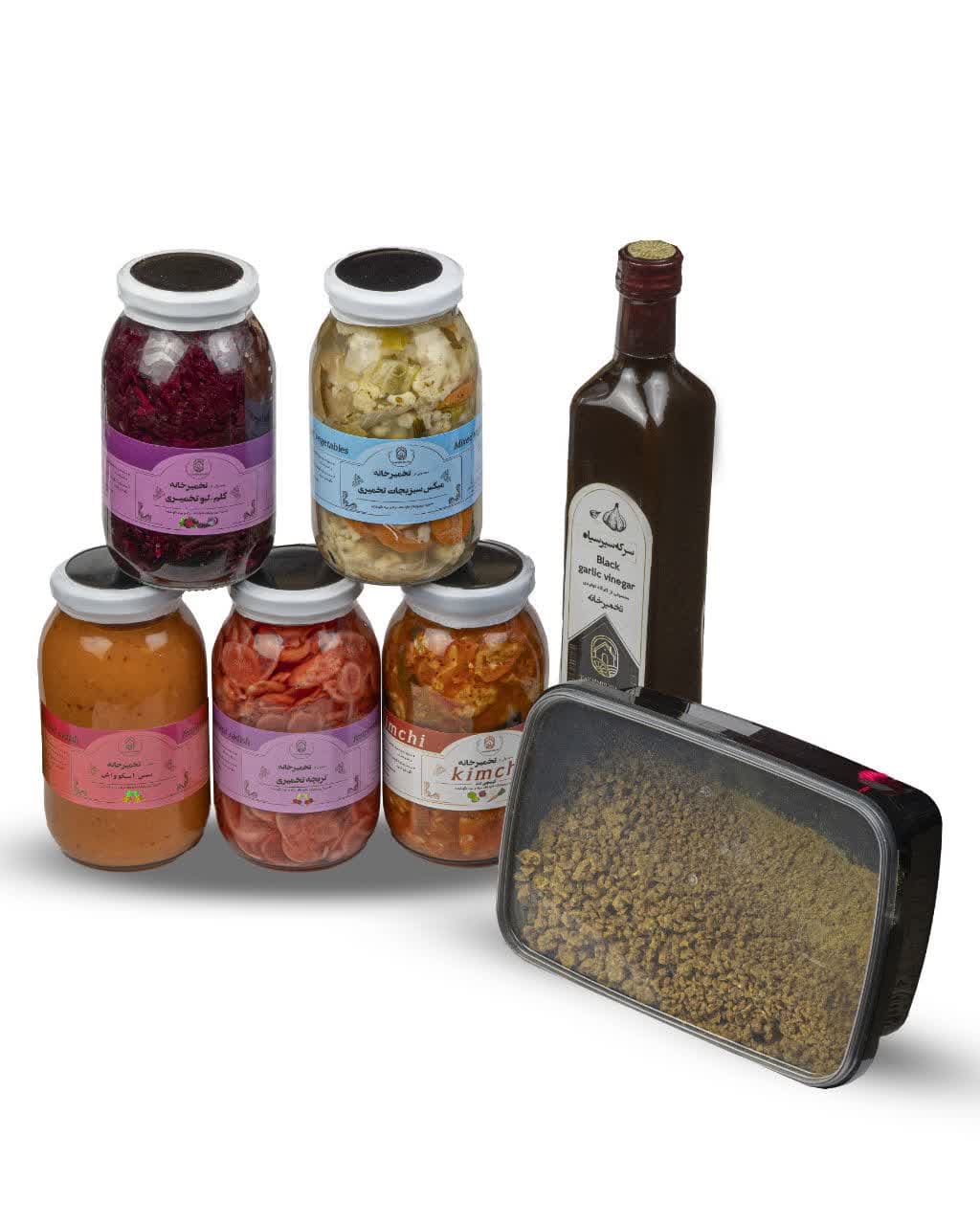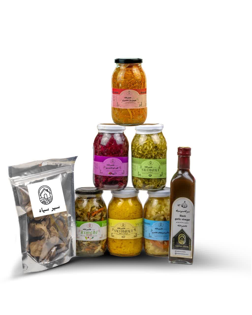 ما در تخمیرخانه به درخواست شما پکهای ویژهای را طراحی و آماده کردهایم که با هزینهای کمتر بتوانید تعداد بیشتری از محصولات را تهیه کنید. با استفاده از پکها میتوانید یا طعم تعداد بیشتری از محصولات آشنا شوید و از خواص آنها بهره ببرید. پک سلامتی شامل 8 مدل از محصولات تخمیرخانه در سایز کامل است که با تنوعی که در محصولات این پک وجود دارد میتوان گفت این پک طیف گستردهای از مشکلات سلامتی را در بر میگیرد و به بهبود آنها کمک میکند. این پک شامل موارد زیر است: سیر سیاه ۲۰۰ گرمی، سرکه سیر سیاه نیم لیتری، ساورکرات قرمز، میکس سبزیجات،ساورکرات سبز، کیمچی نرولینا، ساورکرات زرد و هویج پیاز هست.هر کدام ۶۰۰ گرم).